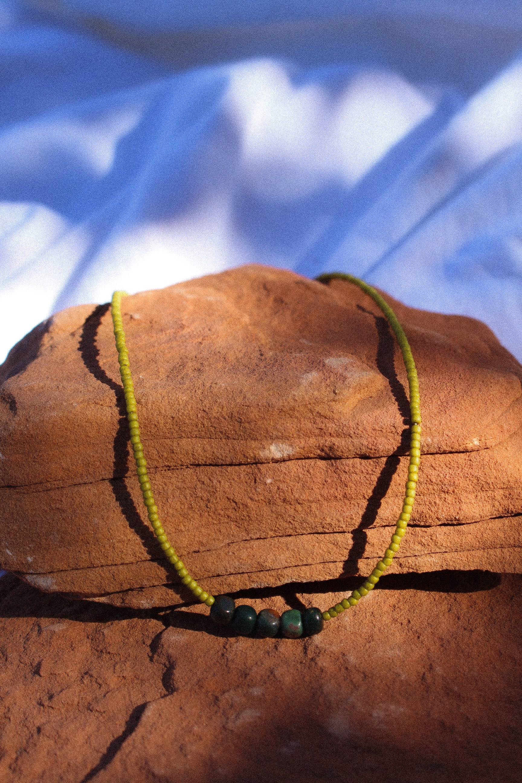 Featuring semi-precious stone Green Jasper with matte green glass seed beads — simple, tonal, and organic.